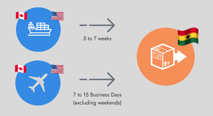 Once we receive all items, we ship your products by air or ocean to Ghana. An agent from our office in Ghana will reach out to you when your good arrives.